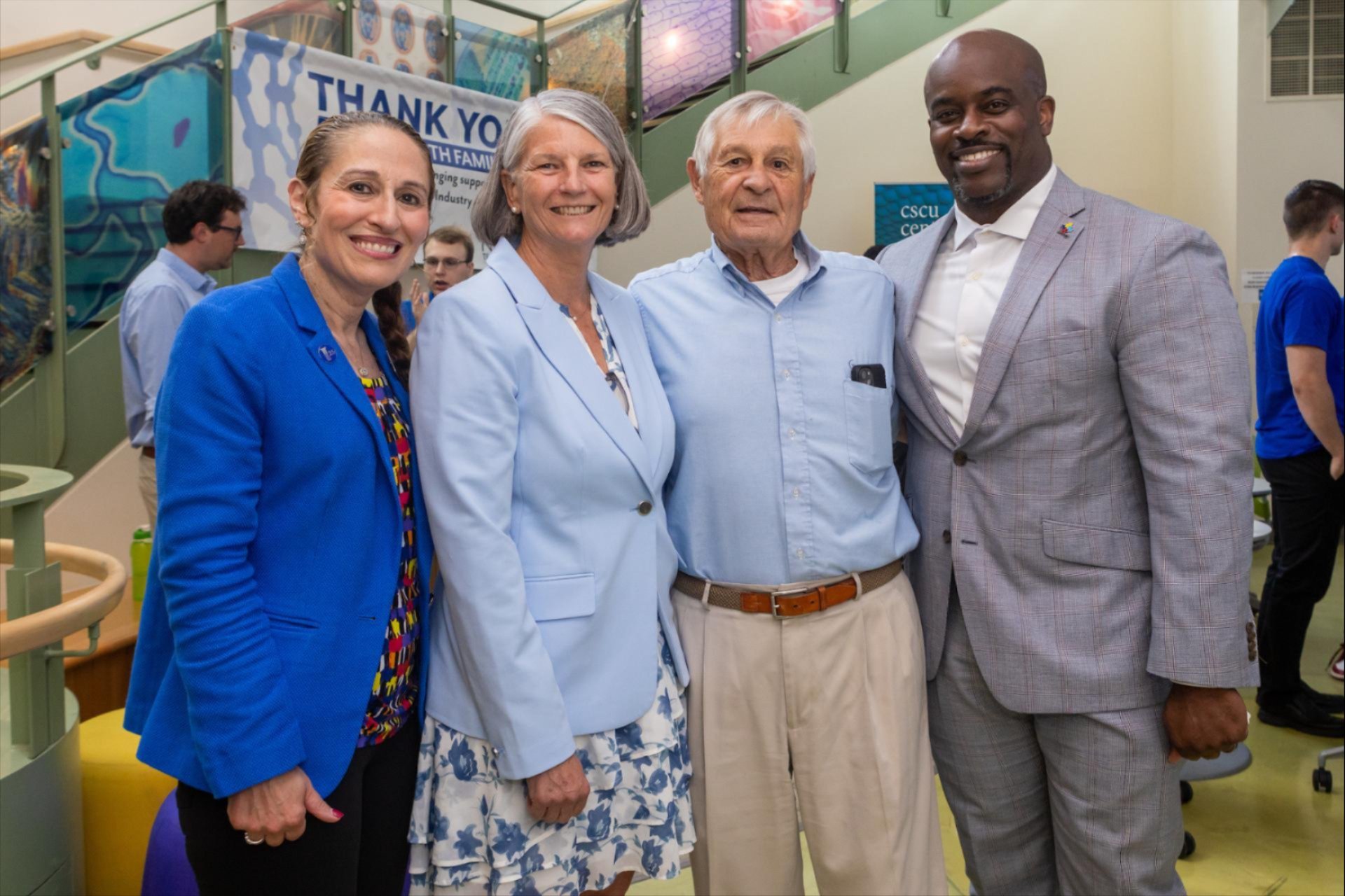 Dr. Christine Broadbridge, SCSU Executive Director Research & Innovation; Dr. Sandra Bulmer, SCSU Interim President; Peter Werth, Endowed Werth IAF benefactor; and Dr. O. John Maduko, Interim Chancellor, CSCU at the Werth Industry Academic Fellowship (IAF) end of summer program capstone pitch presentations.